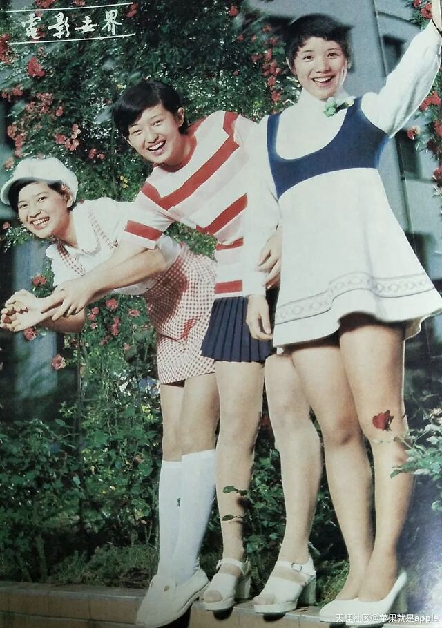 这是山口百惠所在的“高中三枝花”组合,三个成员都是50后,当年只有十几岁。