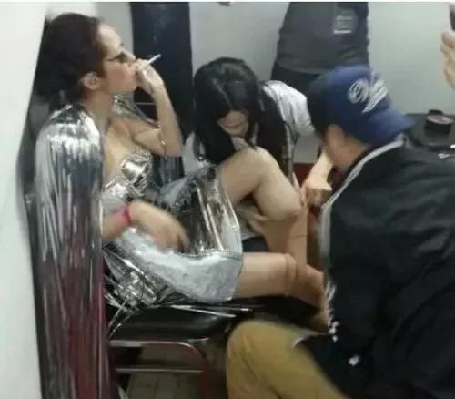 工作时被拍到在狂放吸烟,让工作人员为自己穿丝袜的不雅照片。