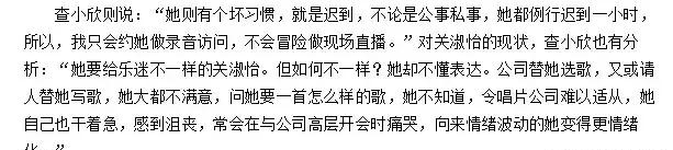 这对时不时就怀念舞台、感恩歌迷的关淑怡来说,无疑是让人失望的。不知道她控诉的“食言”是否就与此有关。