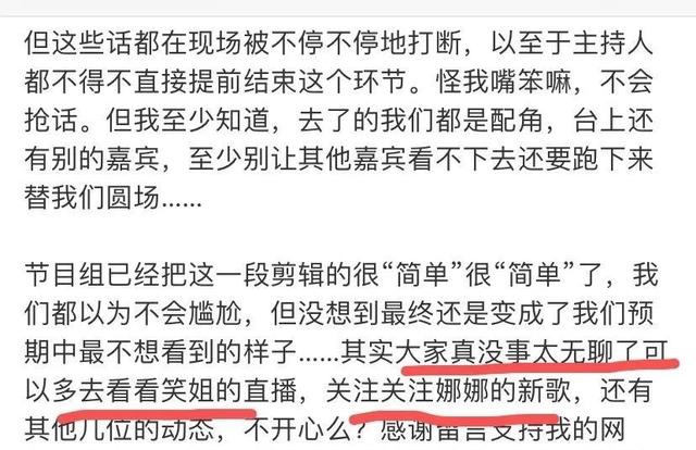 最后她让大家别关注这事,无聊可以去看笑姐的直播,关注娜娜的新歌。