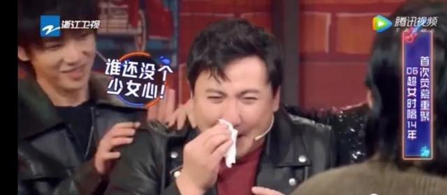 但搞笑的是,只见局外人沈叔叔哭得抽抽嗒嗒,其他几位超女并没有掉泪的意思,倒有点被他哭呆了。