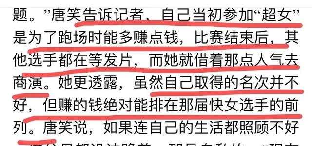 当年其他超女进天娱后就等着发唱片,甚至为此撕抢资源。唐笑却打定主意:我就是来赚钱的。她拼命接商演,别人嫌钱少不去的她都接,赚够钱就买房子。