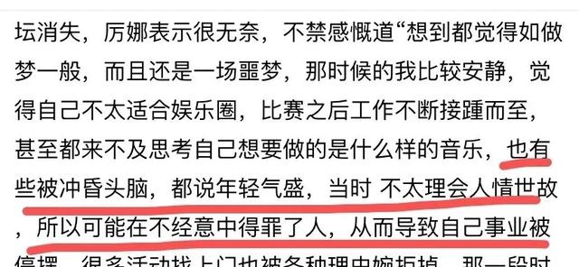 到底是为什么被雪藏,厉娜语焉不详:“当时不太理会人情世故,可能在不经意中得罪了人。”