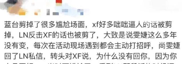 从播出节目来看,她好像只是打圆场,说尚雯婕性格内向,从比赛时到现在都没有变。但有网友在网上爆料称,她现场话中直指某人人品......