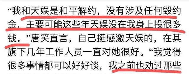 其他超女跟天娱处得大多不太愉快,要么赔付天价解约金,要么生生挨到约满。唐笑跟天娱却是和和气气解约,没解约金,还保留了主持人约,可以接芒果台的好些节目。