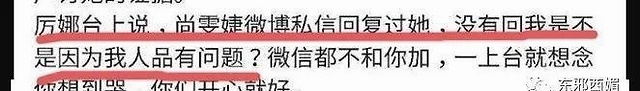 她直播中也提到,尚雯婕从没参加聚会,却说“你们没叫我”。