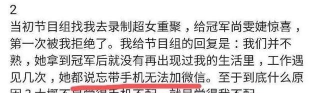 当然除了种种前因,还有各人性格不同的因素。等到时过境迁竞争关系不再存在,同届十强其他人时不时聚个会,唯独尚雯婕从未参加,也不加她们的微信。