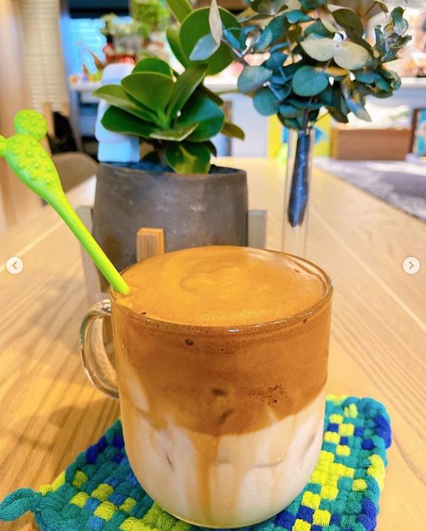 这次除了打游戏入迷,Ella也给大家露了一手,亲自上阵制作咖啡,她还俏皮称自己打了400次才完成这杯咖啡。真是不容易呀。