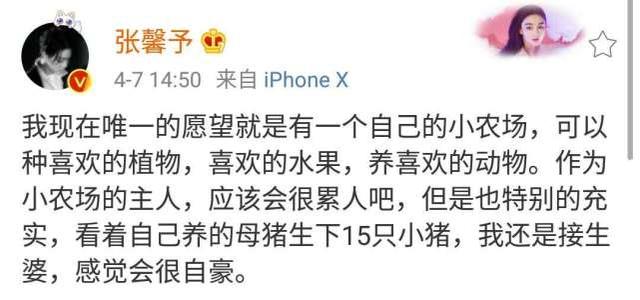 前两天张馨予还透露自己目前的心愿是当农场主,甚至还想给自己养的母猪接生。之前她也多次晒出过打理自家后花园的照片,种花、摘菜、摘桔子……已经让人感受到了返璞归真人生活状态,确实让人有些向往。只是从大明星到母猪接生婆,真想采访一下张馨予最近的内心真实想法。