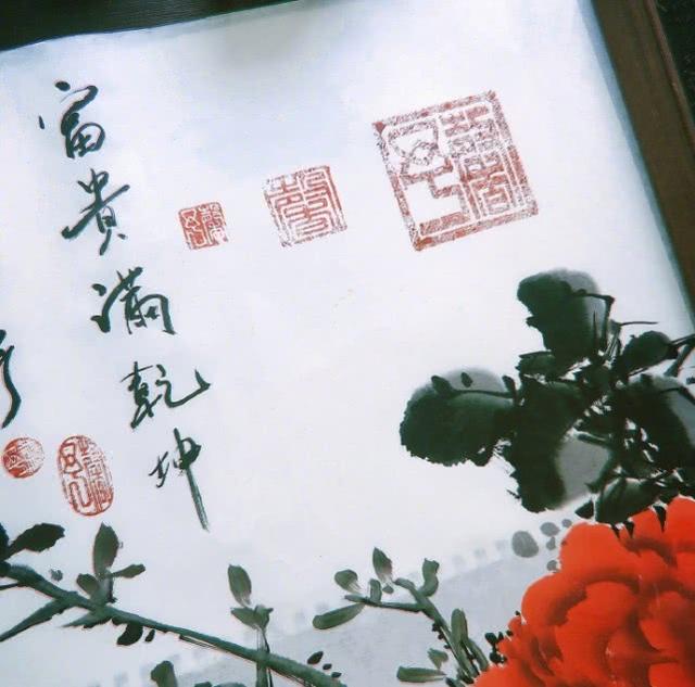 张馨予晒出的作品上能清晰看到“富贵满乾坤”几个字,字迹潇洒飘逸,再配上旁边的水墨画,十分漂亮大气。