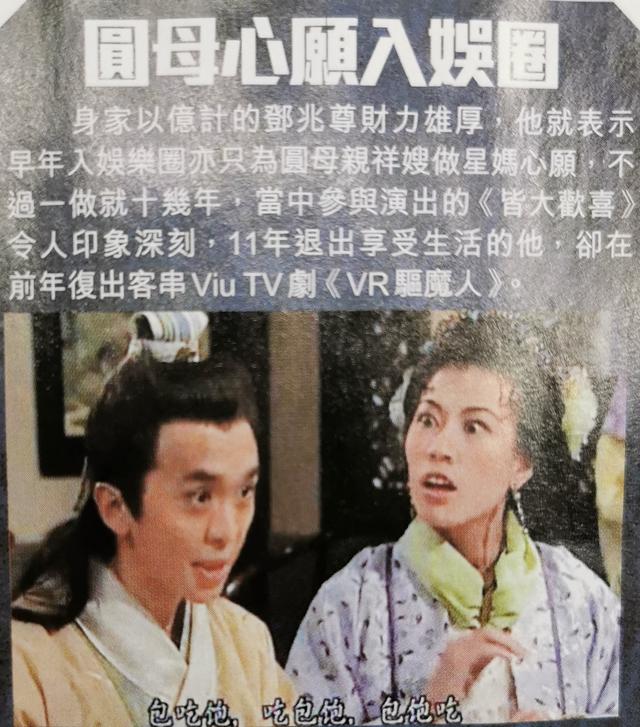 TVB的金牌绿叶邓兆尊出生不凡,家族资产高达15亿,身为公子哥的他当初入行只为了圆母亲当星妈的心愿,11年宣告退圈开始享福。去年7月母亲去世之后,邓兆尊四兄妹继承遗产,其中发展最好的邓兆尊继承遗产后,财力更加雄厚,成为圈中大富豪。