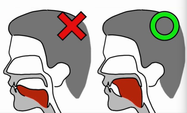 想像正在发「na」的音,将舌尖轻碰上排门牙,接把整个舌头贴着口腔上部(上颚)。