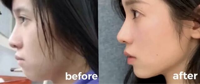 可以看看用了这个方法后的改善作用,对凸嘴的改善非常明显了。原本显苦相的脸,现在变成了侧颜杀。就只是稍微改变了下庭,改善嘴巴前突,下巴也显尖翘。