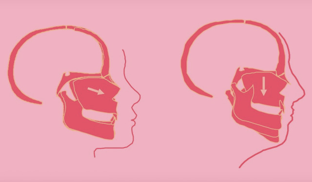 正常状态下,我们应该将舌头整片贴着上颚。但现代人常让舌头不自觉的摆放在口腔下侧。这会影响到口腔周肌肉、牙齿等发展,脸渐渐处于内凹状态,就容易出现双下巴、戽斗、龅牙等状况。