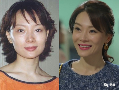 正面例子蔡少芬,除了软组织流失,轮廓和年轻时候相差无几,高但不外扩的颧骨起到了重要作用。