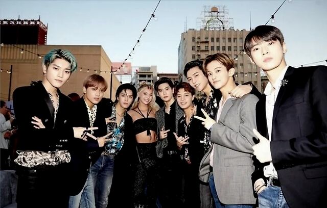 Loren参加活动的时候,还破次元壁和男团nct合影。