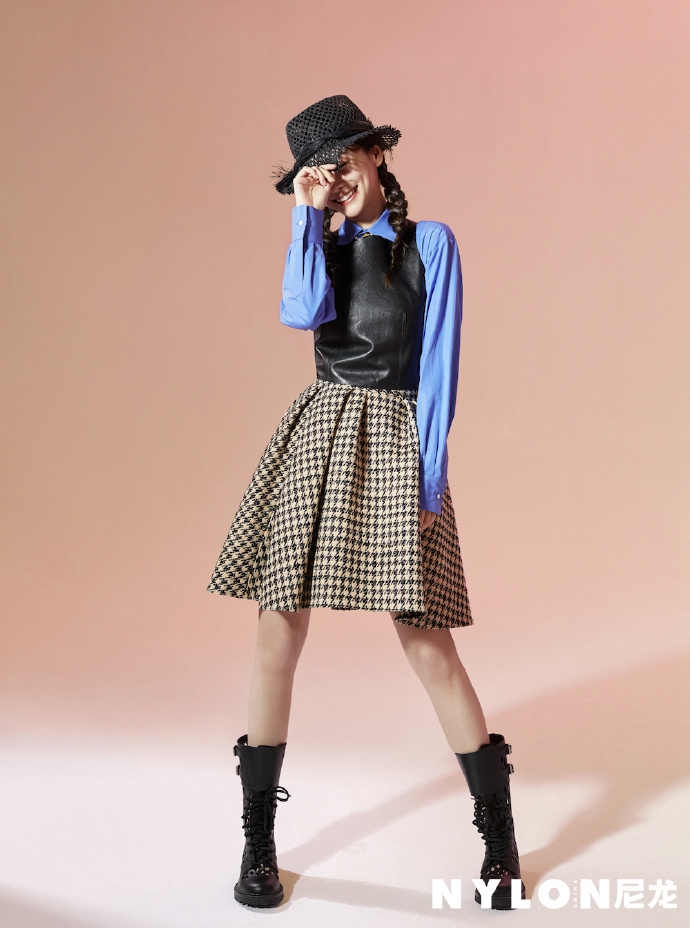 大片中baby以麻花辫造型出镜,春日少女气息打扮送上甜美wink,十分撩人。