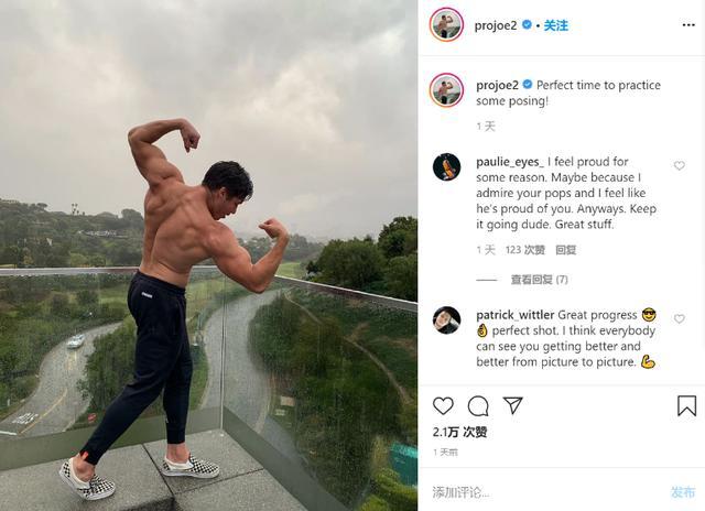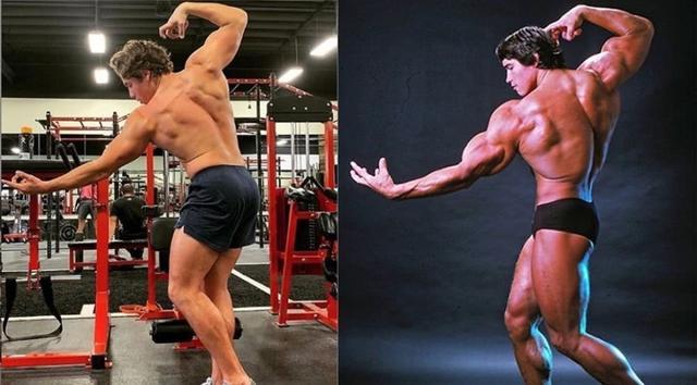 在健身道路上越走越远的他,和父亲一样不断追求极致, 如今已经有了能与之相媲美的身材,而他还经常会摆出施瓦辛格的同款动作,以示仰慕之情。