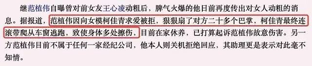 而关于暴力殴打这件事,在曝光“初夜门”次年,范植伟又被曝出打女模特。