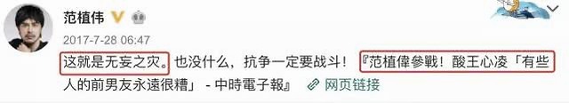 而没想到如今,范植伟还是没想放过王心凌,在最近又在网络上发动态暗讽王心凌,真是作妖。