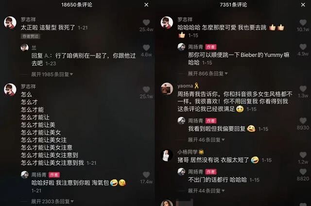 在罗志祥的视频发布了不到1小时,周扬青就在网络上也发布了同款大头特效的视频,而视频中的周扬青看起来心情很不错,视频画风也很喜感,最后自己也笑场了。