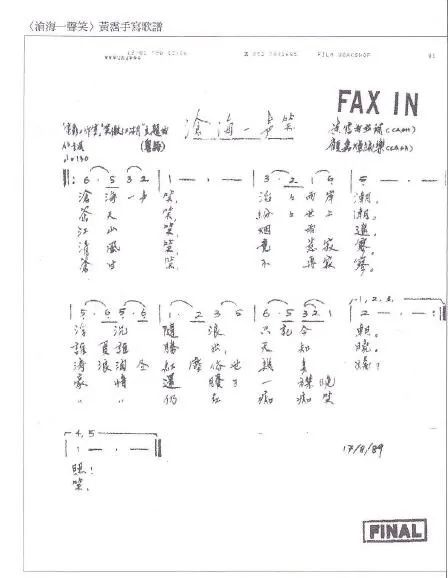 他急急写下三句,填了词,在谱上画了个亢奋的男性生殖器,传真给徐克:“要便要,乜乜乜乜老母,你不要,请另请高明。”这次,成了。