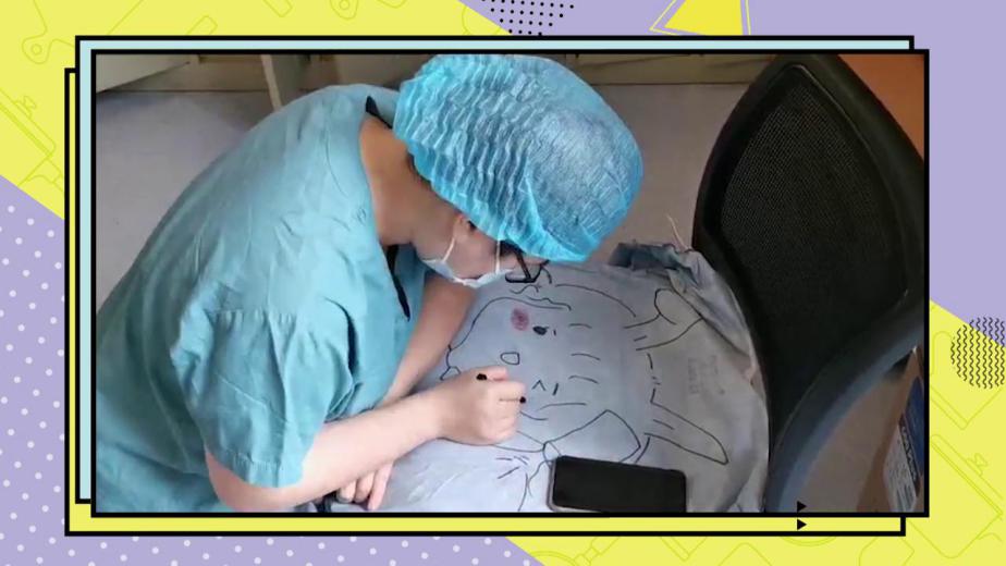 王祖蓝也连线了上海交通大学医学院附属瑞金医院援鄂医疗队的医生李菲卡、曹伟伟和护士沈春悦,这天是他们完成援鄂工作即将返沪的最后一夜。他们负责华中科技大学同济医学院附属同济医院光谷院区重症病区的医护工作。连线中我们了解到,漫长的51个日夜,他们坚守一线,克服了单调的生活、防护服的闷热,攻克了一个又一个难关。护士沈春悦自除夕起就没有回过家,在抗疫前线,她在厚重的防护服上用可爱的漫画鼓励着医疗队和病患,给了大家战胜疫情的信心与勇气。