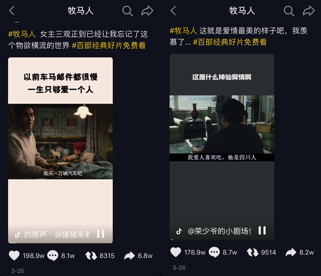 《牧马人》自打去年年底走红之后,视频段子席卷各大平台;