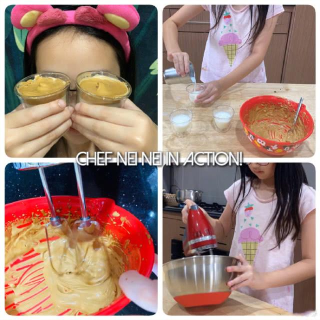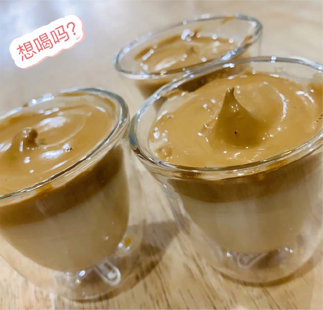 在四宫格里就看到NeiNei只摆放了三个杯子,而下图的成品照中也只有三杯做好的网红咖啡,那家里边是谁没有份儿呢,哈哈哈。