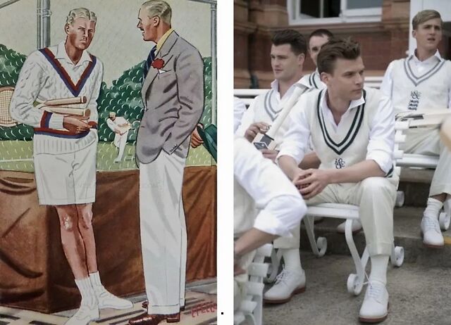 ▲更传统一点网球选手们还会穿这种红色鸡心领的毛衣,是的,大夏天穿毛衣……伦敦天气变换莫测,这个就真的太本土特色了,一般人学不来。