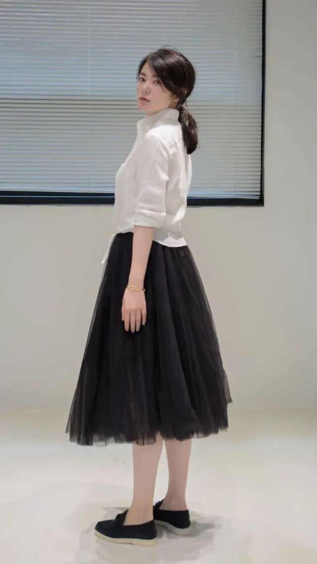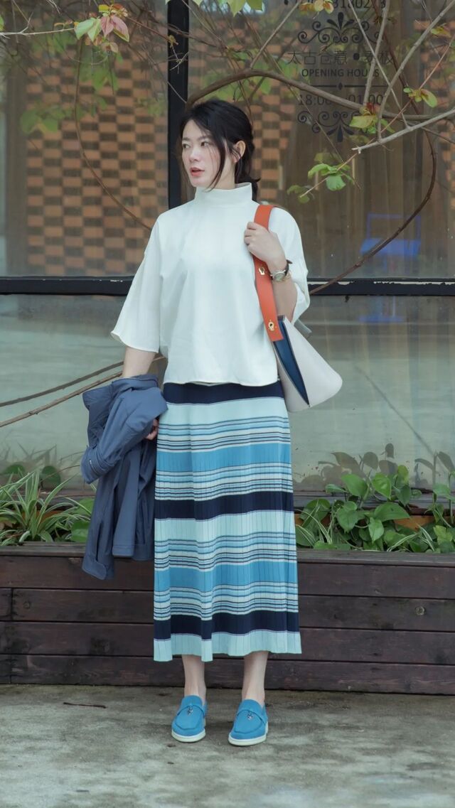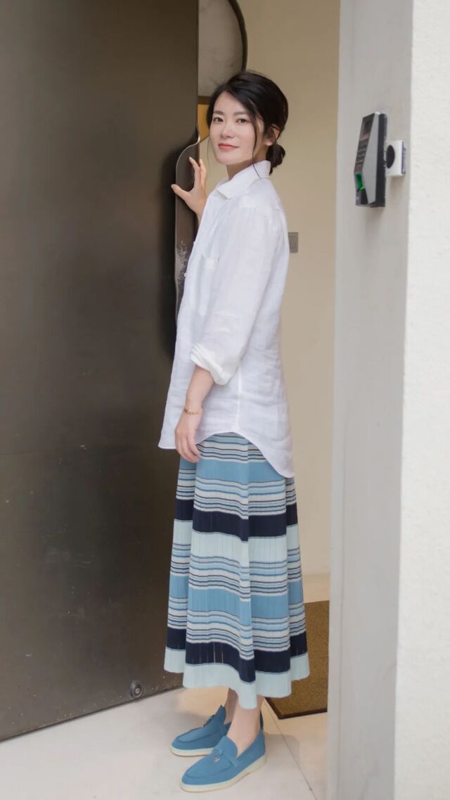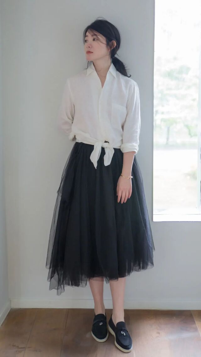 白衬衣嘛,衣柜里面总是有它一个位置,那有一件舒服的最必要,搭配起来又很方便,我自己喜欢穿短一点,有腰的姑娘们可以束起来,没有腰也可以跟我这样打个结。