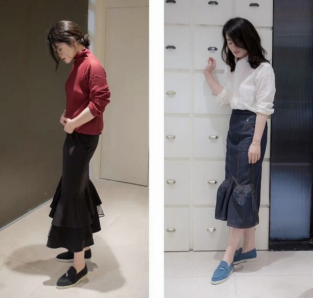 搭配起来其实感觉不太挑衣服,相比与经典的男士鞋型,女性的Summer Charms Walk还配有一圆一方两个金属吊坠,这个吊坠是Loro Piana的专属标志,质感优秀。