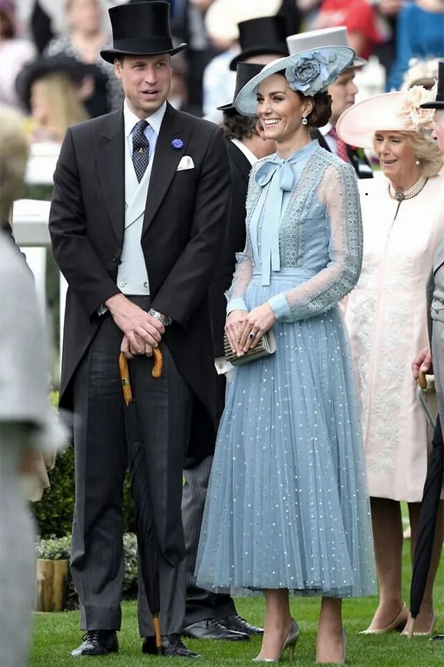 ▲比如男士们要戴黑色高帽,穿正式的晨礼服,女士们裙长一定要过膝盖,千奇百怪的帽子才是赛马会上女人的本体(因为这会儿常会有雨,所以雨伞也是必备单品)……参考威廉王子和凯特王妃,是最标准Royal Enclosure着装典范。