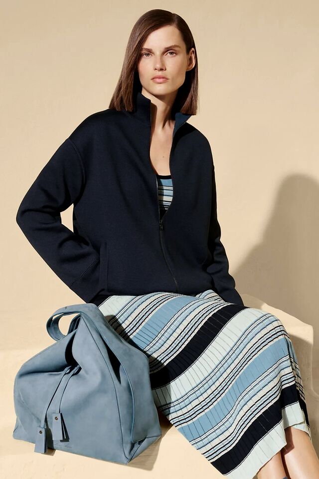 这件复古针织裙我也很喜欢,材质是棉混真丝,我已经没有太多言语来形容舒服的触感了,上身非常轻而且软,如果你去到店里,一定要试一下,大约也很难有品牌这么照顾穿着者的体感了。