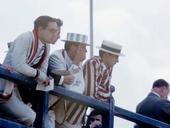 伦敦社交季开始的标志就是牛津、剑桥两大名校的赛艇对抗赛(今年没开),最标志性的衣着其实就是穿你支持的那一队同样颜色的布雷泽西装。