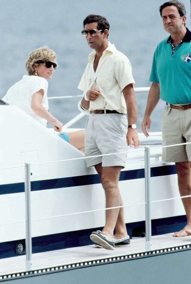 ▲90年代的查尔斯王子与戴妃在游艇度假时,穿的也是一双经典的白底甲板鞋,当然换一身衣装也可以得体地应对镜头。