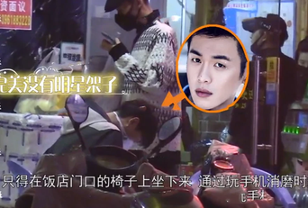等待点餐的过程实在有些漫长,张若昀在店外的椅子上面坐了下来玩着手机,等到助理点餐完成,张若昀就返回酒店用餐了。