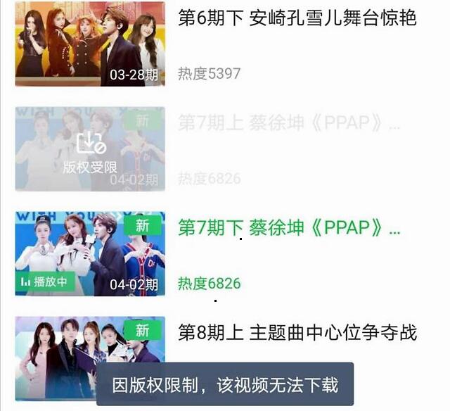 中新网客户端 北京4月9日电(任思雨)今年春天,《青春有你2》为综艺市场贡献了很多热度。最近有观众发现,当再打开第七期节目时,段小薇、赵小棠等选手的《恋爱循环》已经变成了“静音循环”,全程只听得到突兀的几句喝彩和特效声,画面右侧的字幕写着:“与版权方沟通,版本替换中