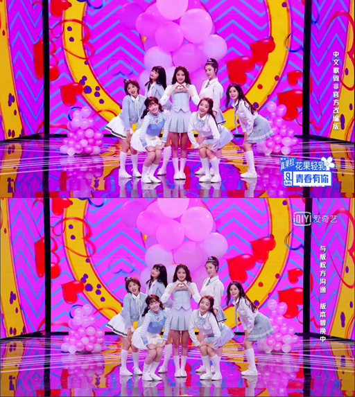 《青春有你2》中,选手们表演了《恋爱循环》的中文改编版,首播时画面字幕特别标注了“中文歌词非官方改编版”。但现在再打开,便“只看其人不听其声”,字幕也换成了“版本替换中”。收录该综艺歌曲的合集中,也找不到《恋爱循环》的条目。