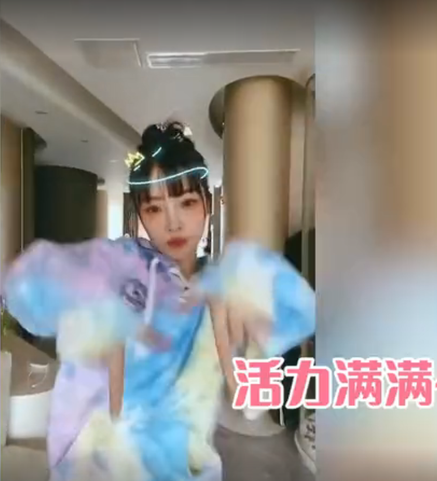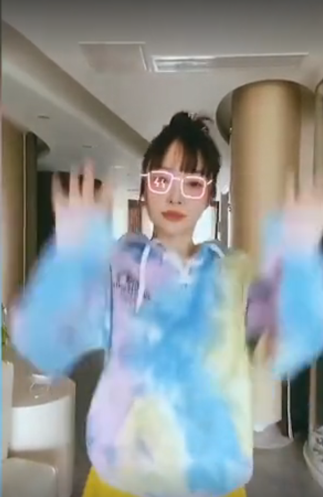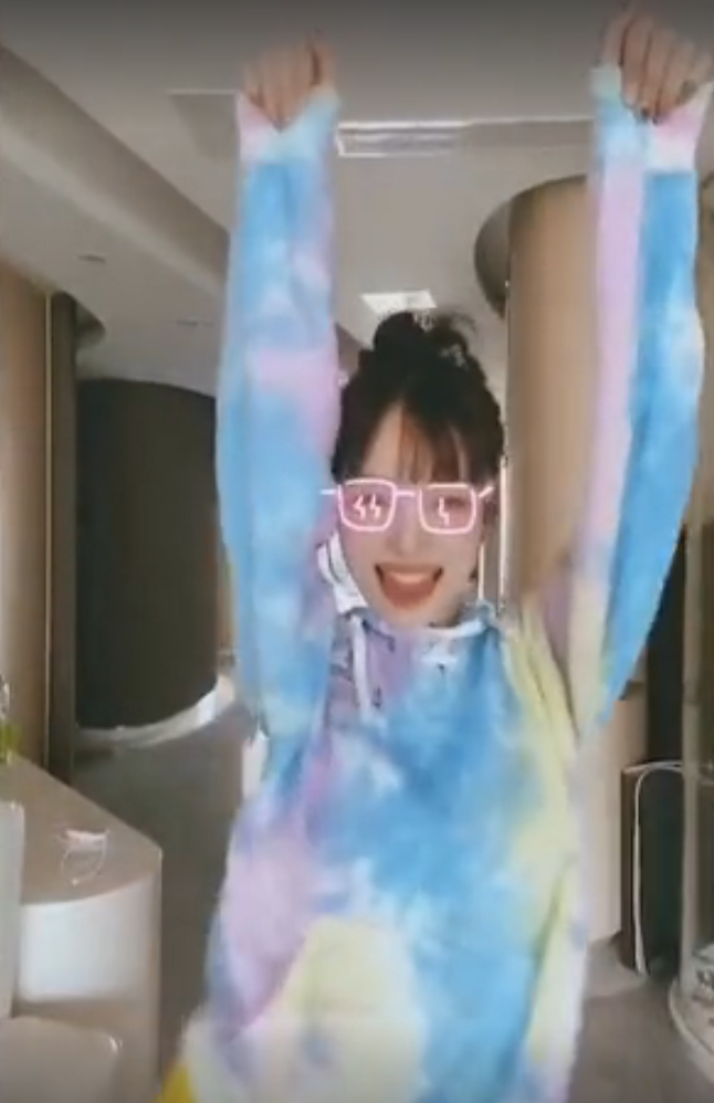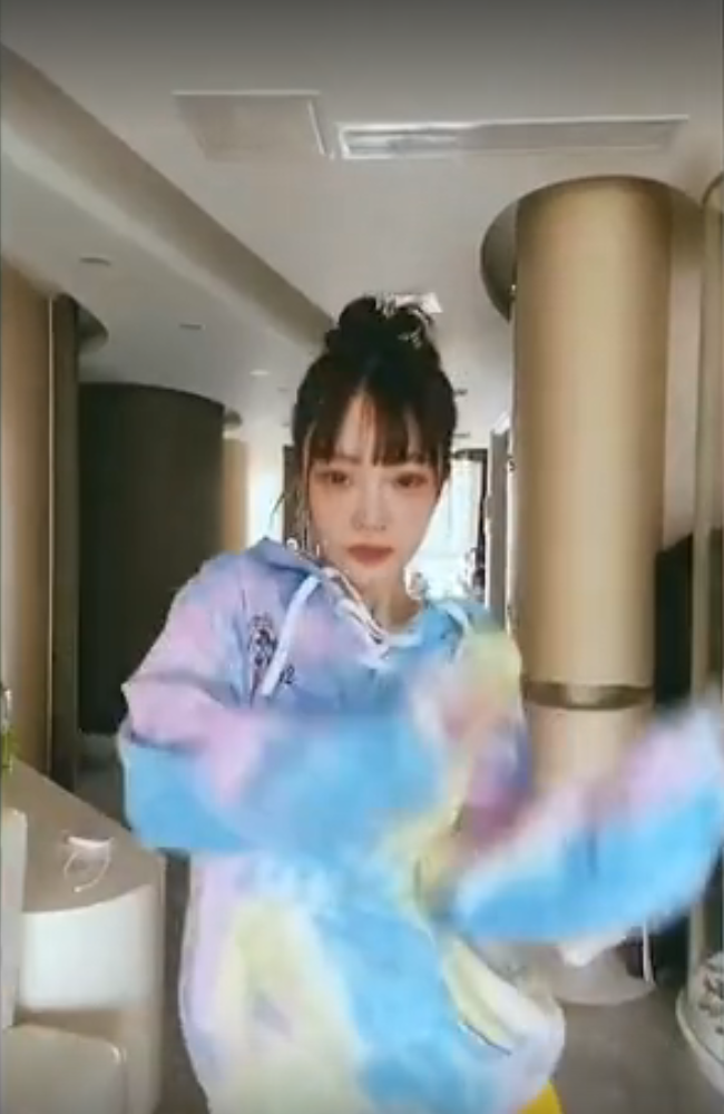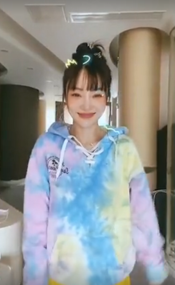只见她身穿混色卫衣,扎着丸子头,造型十分减龄。