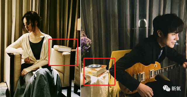 确定两人关系亲密的锤在这里,不在一起拍戏后发的微博出现了同样的书和背景。