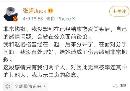 虽然金晨速速否认了,但@酷格作为正牌女友气得和张超吵架闹分手,可惜张超不愧是顶级pua渣男,他态度丝毫不心虚,也不挽回,一副你误会我了,但我尊重你的选择。