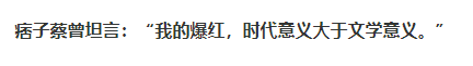 但是也正如痞子蔡所说,这一代网红的时代意义大于文学意义,因为他们提供了草根崛起的样本,证明了普通人可以通过网络成名的可能性。