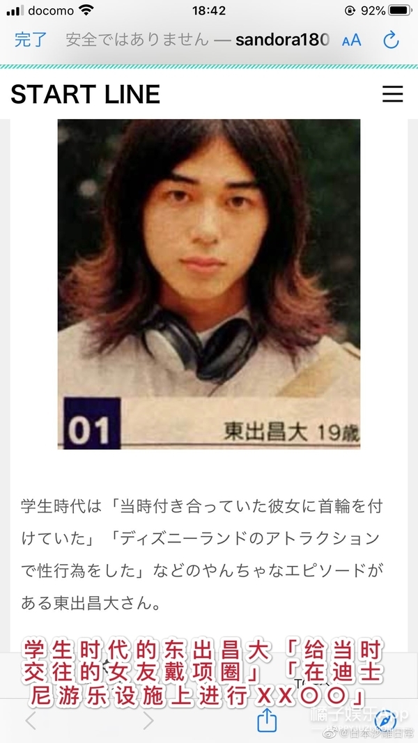 对象是97年出生、当时还没成年的演员唐田英里佳。