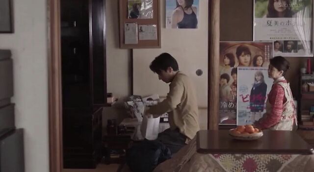 男人祭拜着父亲的灵位,吃饭时用着父亲的碗,用像父亲的声音讲着和有村架纯相似的童年往事…