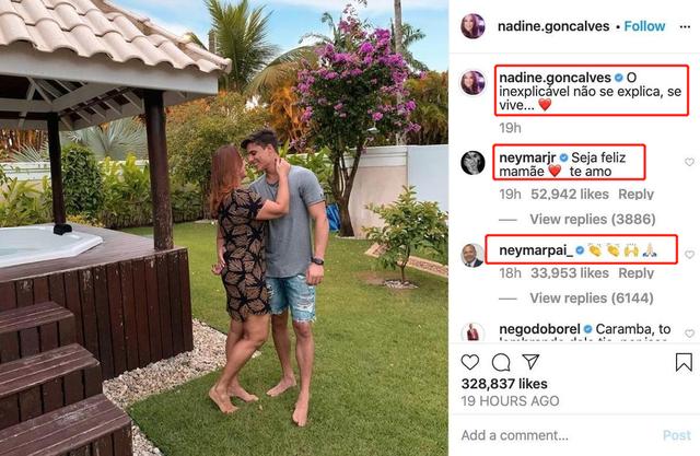 据悉内马尔的父母在2016年离婚,结束了25年的婚姻,此次内马尔妈妈晒照公布恋情,除了获得儿子的暖心祝福之外,前夫、内马尔的爸爸也留言以拍手的表情给予祝福。