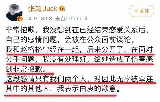 随着事情发酵,张超也在网络上发表声明,表示自己确实和赵格格在一起过,但在分手时有很多事情还没处理,很抱歉给女方带来了这么大的伤害。