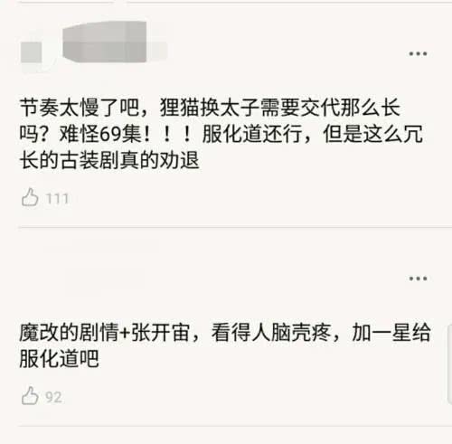 网友纷纷在社交媒体和弹幕上吐槽,对剧集播出前的期待值太高了,播出后发现剧情节奏太慢,慢得直让人想睡觉。还有网友称1.25倍的播出速度才是正常的播放速度。