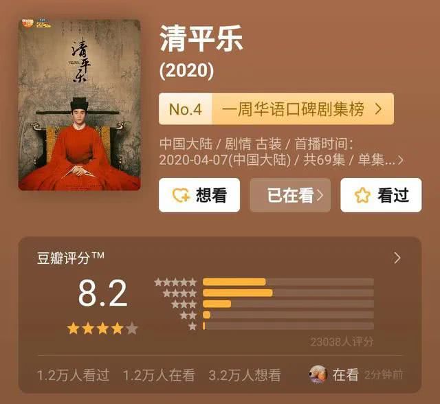 前两集播出后,《清平乐》在豆瓣上得到了8.1的分数,这在国产剧中的评分已经是及格且偏高的了,可在正午阳光所产出的剧集中,这样的分数只能说是差强人意。相比起同期上映的另一部正午阳光电视剧《我是余欢水》,要低上不少。