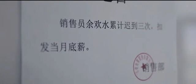 由于买牛奶,又送儿子上学,余欢水上班自然迟到了,不仅被通报批评扣工资。